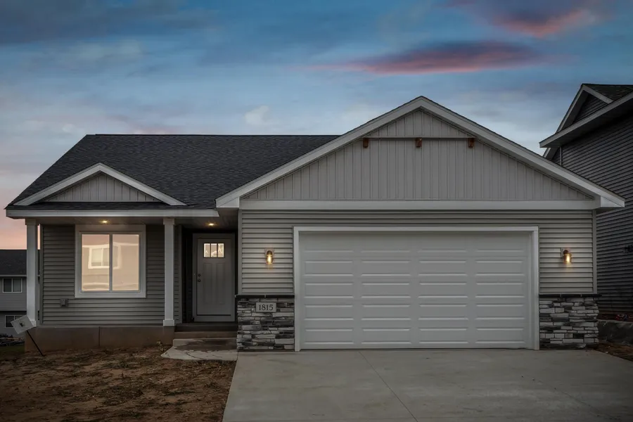 Nestled in a friendly neighborhood within walking distance of River Falls High School, this delightful ONE LEVEL, 3-Bed, 2 Bath Home offers both comfort and opportunity. Enjoy the spaciousness provided by the vaulted ceilings throughout the main living/kitchen area. Home features quality finishes with enameled trim and solid core doors. Kitchen includes large center island, granite counter tops, tiled backsplash, soft close cabinetry and SS appliances. Relax in the large primary suite featuring a spacious bath and walk in closet, providing ample storage and privacy. Walk Out unfinished basement which offers the possibility for 1400 additional sq ft, 2 more bedrooms, a bathroom and a family room. Enjoy the convenience of being close to local amenities and schools while living in a peaceful community with a park across the street! Landscaping (Hydroseeding, rock, edging) included. Builder is offering basement finishes and deck additions at builder costs.