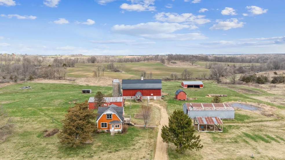 This charming 10-acre hobby farm is available due to the owner's relocation. The family has cherished this home and made numerous updates, including a new furnace, air conditioning and a reverse osmosis system, just to name a few. The home features a living room, dining room, kitchen, bathroom, porch and office, all adorned with beautiful maple hardwood floors. Upstairs, you will find three bedrooms and a full bathroom. The barn and grain houses have newer roofs, and there is electricity available to the barn and all pole sheds. The property includes several outbuildings: a 56 x 30 pole shed, a 64 x 40 machine shed and an 80 x 30 barn, plus a pasture that boasts full electric fencing. This scenic parcel offers so much potential. The home provides stunning views in all directions and enjoys sunlight throughout the day. Don't miss this opportunity book your showing today!