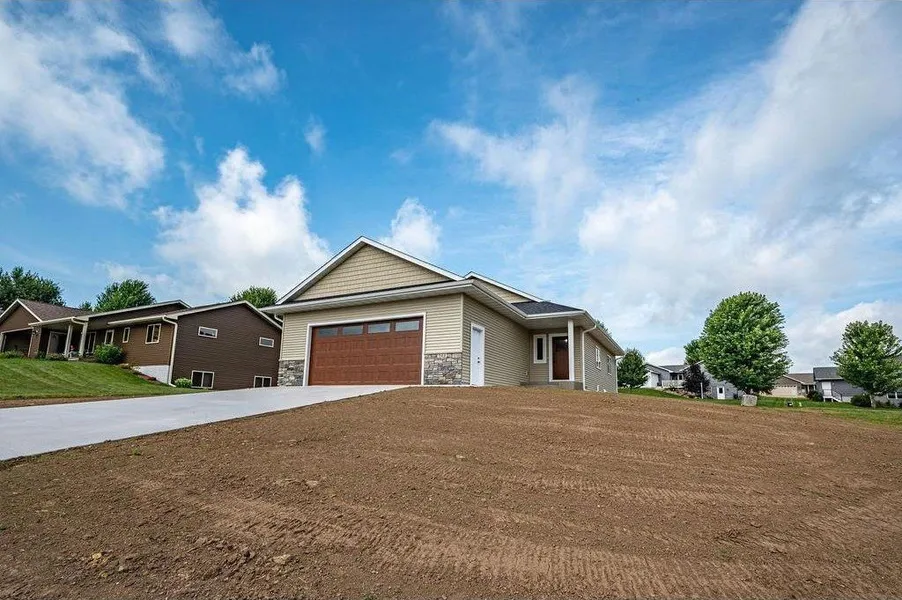 Brand New, Efficient One Level Living!!! Custom Kitchen Cabinets w/HanStone Quartz Countertops! Living Room features Patio Door leading out to Backyard; ready for your Deck plans. Generous sized Primary Bedroom w/Private Bath & Walk-in Closet. Laminate Vinyl Plank Flooring throughout Main Level. Unfinished Lower Level awaits your finishing touch for additional Living! Oversized Insulated 2 Car Attached Garage. Great Neighborhood; walking distance to Schools!! Schedule your Showing Today!