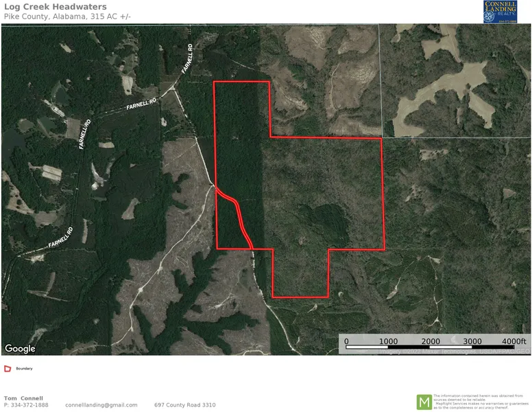 Description: Consider this 315-acre recreational tract of land located at the very northern end of Pike County. Approximately, 215 acres have had the timber removed and is available to replant, convert to pasture, or convert to field. The remaining timber is made up of hardwood and old-growth pine that has Log Creek running through it. Log Creek is a spring-fed southward running stream which runs its course through mature hardwood bottoms. The stream, which is part of about 15 acres of wetland, seems to continue to run even in the driest of times.