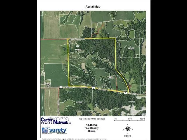 Pike County, IL: Sec 18, T-4-S, R-2-W. 177 acres. 80 acres tillable, 50 acres is in production. 97 acres of timber for excellent deer and turkey hunting. 1345 sq ft 3BR, 2BA newer home. Move in condition. 42 x 96 barn. *(Home and barn valued at $125,000). Hunts really big with plenty locations for food plots and tree stands. You have to see this beautiful property. See amenities sheet for additional information.