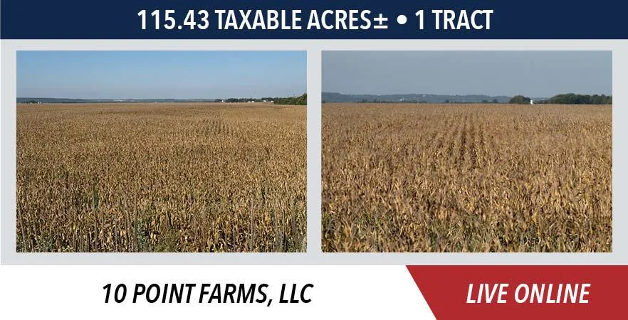 The seller will provide title insurance in the full amount of the purchase price and will pay all the 2025 taxes due in 2026 through a credit at closing based on the best available information. Buyer will pay all subsequent year real estate taxes. Possession at closing subject to an existing lease for the 2025 crop year.