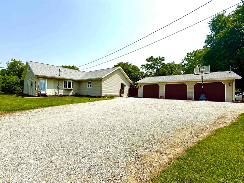 Feel like you are on vacation every day in this spacious country home in Campbelltown! 715 S SR 61, Winslow, has 3 bedrooms, 2 full baths, unfinished basement, 3 car garage, 3 additional outbuildings, and an above ground pool with huge deck all on 1.5 partially wooded acres! Perfect for entertaining, this totally renovated home has a huge kitchen which is open to the dining area and large living area, all on the main level. The large kitchen features newer stainless steel appliances, a large island with built-in gas range, and a huge farmhouse sink. You will love the view from the kitchen and dining area of the partially covered deck and pool! The kitchen is also open to the large living room with a decorative beam. There is a mudroom/ bonus space off the living room just inside the front door. The primary bedroom and a fabulous bath with soaking tub and separate shower are also on the m...