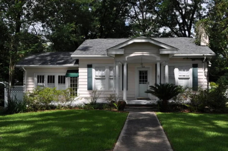 Southern Charm at it's best! Sweeping old oaks & old plantings! Plantation shutters, interior french door, original hardwood floors and large windows for tons of light lead you through this charming bungalow! Light and airy kitchen has a bar that overlooks the brick floored breakfast nook. Gorgeous dining room is spacious enough for entertaining, and leads to the front den that traverses the front of the home. Step down into a separate den for ultimate relaxing! This picture perfect home comes complete with air conditioned, matching girl's playhouse and a great swingset! White fencing keep the parking area secluded and gives you security for the kids. Beautiful master bedroom with double closet and pretty master bath with whirlpool tub let's you get away from it all! Come, grab a glass of tea and invite your friends into your magazine-pretty new home!!!! Hungry? This home is right down t...