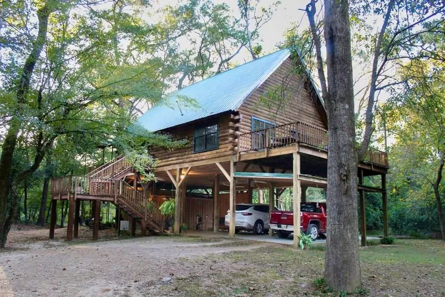 WOW!! Check out this beautiful, log home situated on 5 acres on the Bogue Chitto River! With 3 bedrooms & 2 bathrooms, it is approximately 1700 sq ft offering plenty of space for a camp or forever home. The main bedroom features a heart-shaped jacuzzi tub, walk-in closet and a very neat office space upstairs. You will find 2 rooms downstairs with a large bathroom. The open concept great room & kitchen has vaulted ceilings with gorgeous log beams. There are 2 large decks, one on either side of the home with one facing the river that has a built-in outdoor kitchen area for cooking, entertaining and catching up with family and friends. A feature not to forget is the electric cargo lift that is attached that provides an easier and more efficient way to get groceries, furniture & other items upstairs. The large carport under the home has two car bays as well as an area to sit and relax. The 21' x 15' cypress workshop plus the 20' x 4' utility building provides plenty storage space. The property has an 18' x 16' covered deck with water & electricity as well as ceiling fans that overlooks the approximately 800' of easily accessible river frontage with a very nice sandbar. A 13' x 8' rustic storage building is located right off the deck to store chairs, umbrellas and all other river gear. This property is only 14 miles east of McComb, MS.