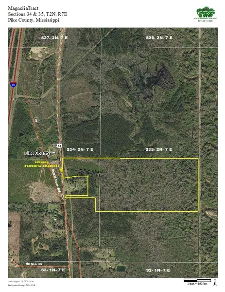 Research Parcel InformationThe tract is 2.5 miles south of Magnolia, MS along the east side of highway 51. It is situated in Sections 34&35, T2N,R7E (See location map).