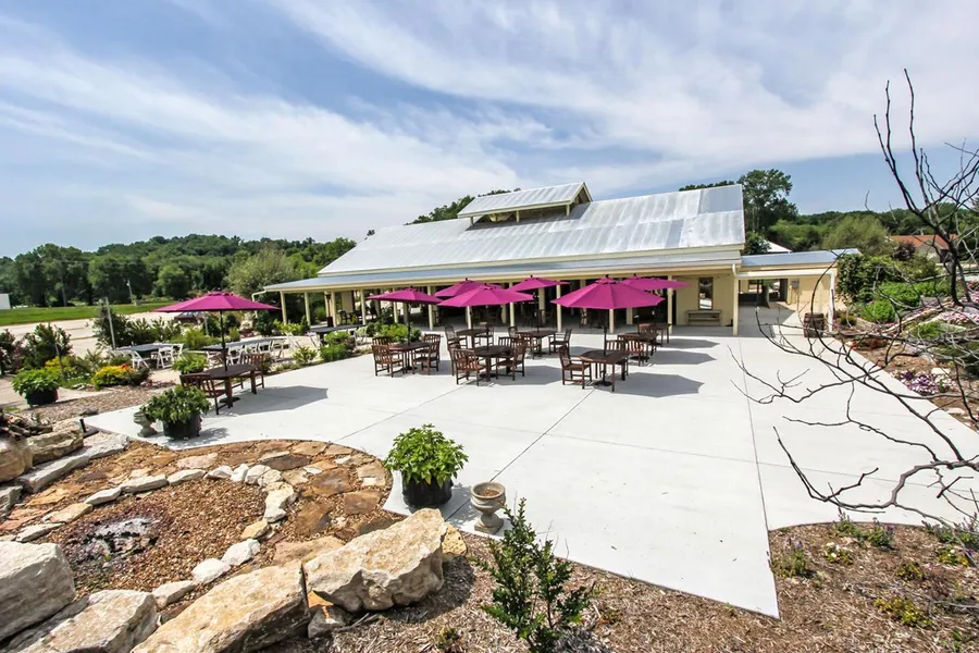Pike County, Missouri business auction at 901 S. Highway 79 in Clarksville, MO. Clarksville Station event venue near St. Louis is a patio complex featuring an outdoor kitchen, extensive bar seating, 2 fire pits, fountains, a waterfall and incredible landscaped architecture. Missouri income producing property for sale just off Highway 79 offers a Napa Valley feel and is designed to accommodate events for as many as 500 guests for weddings, live music or a variety of other entertainment. Grounds are expertly manicured and contain horseshoe pits, hoop houses, a courtyard, walking path and footbridge. Commercial property for sale on the Mississippi River boasted a farm-to-table menu and concerts throughout the year.