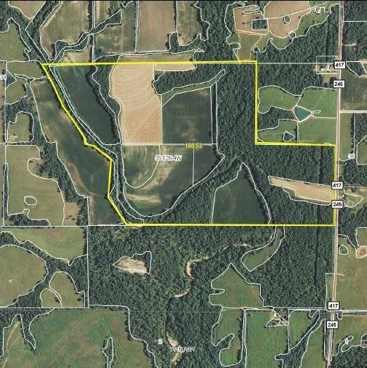 A perfect blend of productive crop fields and productive timber. The farm has multiple creeks, watering holes and a small river running thru it to make the tillable portions very fertile and able to grow and hold wildlife at the same time. There is valuable timber throughout it and along the ridges. Two different logging companies have given estimates at up to $40,000.00 to selectively cut trees.