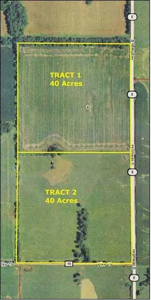Tract 1 The North 40 acres, with the Pike County FSA Office calling 38.9 acres tillable. This tract has frontage all along the East side on Hwy E. Aside from the tillable acres there is a wooded fence row along the North and West sides and a very small patch of timber in the Southwest corner. This property lays well and is currently being used for row crop production.