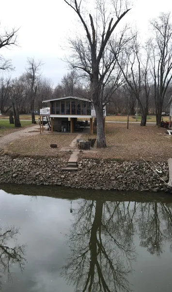 It's 3 bedroom 1 bath (also 1 bath in storage block on ground under cabin), nice vinyl tile, birch cabinets, marble shower and lifetime decking. It features an open floor plan with a nice size living room/dining room and kitchen where all appliances stay, as well as all the furniture in the house, including the furniture on the 9x23 ft screened in porch! There is an 8x11 sundeck that leads to a nice size storage room. Underneath the cabin is all concrete, lots of it, for a patio, a walk way and the driveway all the way down to your very own concrete boat ramp, no more waiting on others to load or unload their boats. Also underneath the cabin is tons of storage, park your boat, your ATV's or your vehicle. There is so much to do, fishing, hunting the islands, exploring the islands, visiting neighbors and there is lots of public hunting near by. Asking just $139,900 If you have questions or want to take a tour contact the Legacy Land listing agent Cabot Benton 217-371-2598 or