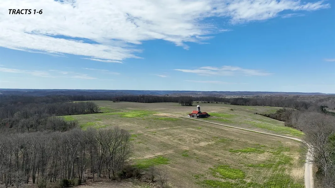 Tract 1: 54 ac including approx. 50% cropland, several outbuildings, a pond, and woodland. A diversified tract with many opportunities!