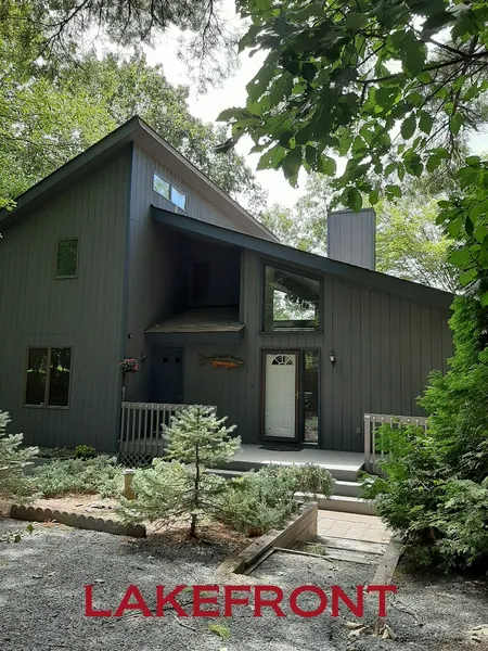 Contemporary Lakefront home features both inside and outside living! Wood burning fireplace for cozy cool evenings and huge outdoor screened in deck for summertime alfresco dining. Waterside living with a 12'x14' dock to tie up your canoe, kayak, or paddle board. Don't forget the fishing rod! Double lot for extra privacy. En suite master bedroom with lake view, 2 extra bedrooms, full bath, laundry room and spacious living area's.