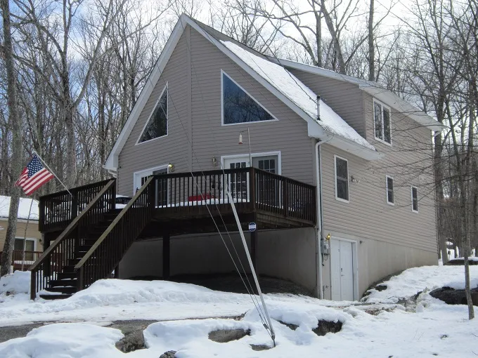Like new Chalet home for sale at Masthope Mountain! Home features 3 floors of finished space with 3-4 bedrooms, 3 full baths, PLUS upper level family room, PLUS lower level 2nd family/game room, living room with fireplace, large deck, laundry room, large storage shed, ''smart home'' heating and security upgrades, and more. The furniture can be included with an accepted offer on the house. House is neat and clean and like new and centrally located for access to all the wonderful amenities that Masthope has to offer you and your family!