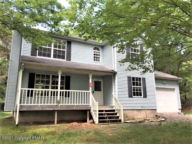 Move your Family into this Lovely 3 Bedroom Colonial Home featuring a Living Room with a Brick Faced Wood Burning Fireplace, Spacious Kitchen, and Formal Dining Room, Master Bedroom with his and hers Closets, with access to to the upstairs main Bath, 2 more Bedrooms , a scuttle access to the attic, a Full Unfinished Basement and a 1 car Attached garage. Home sits on a flat lot, and has a convenient Circular Driveway, and lots of parking space. Community has a Clubhouse, Outdoor pool, Basketball court, Tennis Court, Baseball Field, and 2 Lakes, Fishing permitted with fishing license. Close to Delaware Water Gap Recreation Area. Hiking, Boating, Swimming. Bushkill Falls and other Pocono Attractions. Low Taxes! Check it out Today!