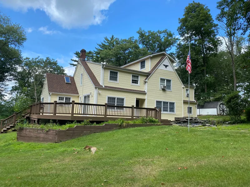 Spacious 6/7 bedroom, 5.5 bath country classic nestled on 1.75 acre parcel with picturesque views and easy access to private beach, swimming dock, and boat slip (less than 2 minutes walk from deck to dock). This former lakeside inn features spacious living room with beamed ceiling & brick fireplace, huge eat-in kitchen, and formal dining room. Plus wrap around entertainment deck, fire pit, and outbuildings for storage. Priced to sell!