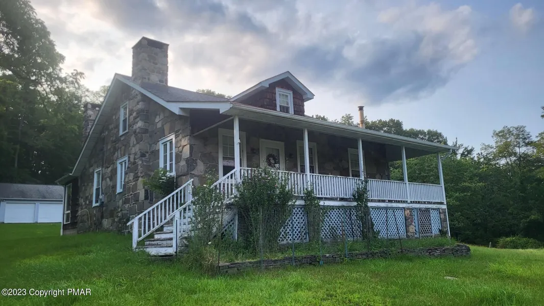 Out of the Ordinary and Charming, you will find surprising details in this Stone Home. Easy living with everything on one level. Large eat in kitchen offers ample space for meal prep and gathering, formal dining room offers vaulted ceilings with skylights and large living room has a cozy stone fireplace. Enjoy relaxing Mountain Views from your covered front porch. Over sized 3 car garage on 1.34 acres, newer roof and new furnace are a plus . See all this Unique home has to offer today. Finished walkup attic Great for additional space.