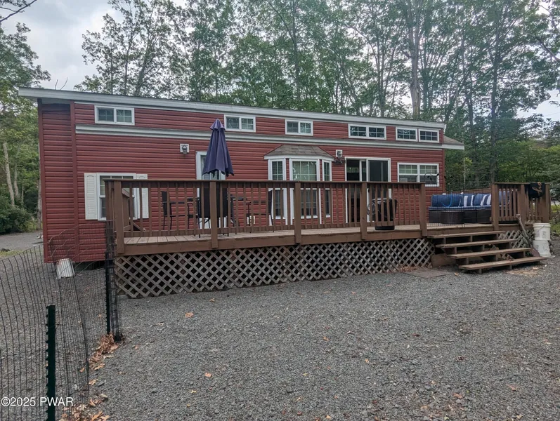 2016 like new, BEAUTIFUL park model trailer with deck, shed, and graveled lot available in Trails End!! Trailer looks like a log cabin inside, complete with fireplace, loft, upgraded cabinets and countertops, primary bedroom with a queen size bed, 2 more queen mattresses in loft, and a pull out couch to sleep 8 total!! Wicker couch and outside table are on the deck, which has gates so your pups stay put. Pet safe fencing surrounds the graveled, flat, close to the entrance lot. Walk to all amenities! Yearly dues include water, septic and electric. Come see this today!!!