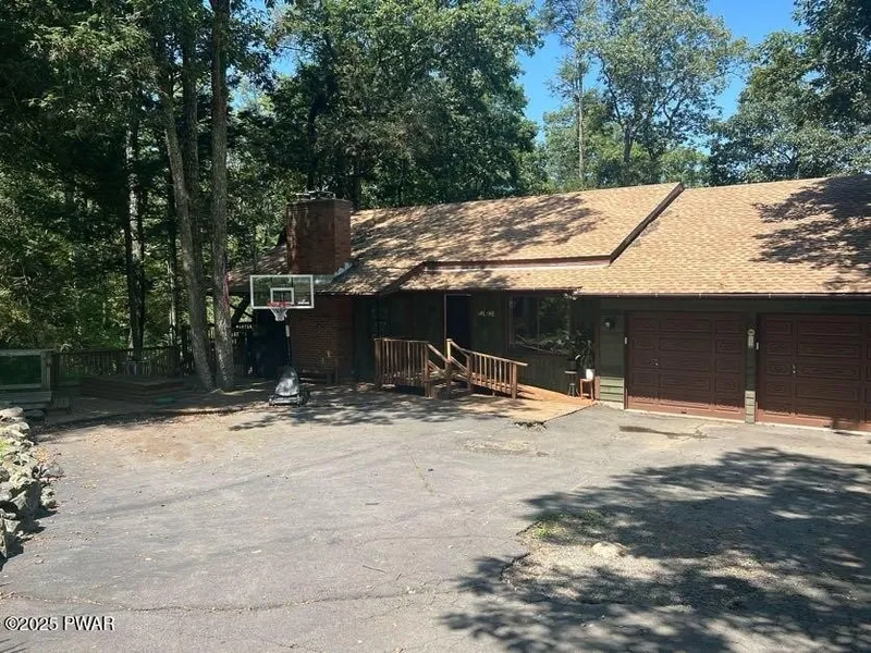 Come see this unique 3-bedroom, 3-bath Country Charmer tucked away on a quiet cul-de-sac and set on a double lot totaling 2.80 acres. The main floor features rustic hardwood floors and an amazing living room with a tongue-and-groove cathedral ceiling, a cozy brick-faced fireplace, and abundant natural light from large windows. The kitchen offers stainless steel appliances, while the formal dining room includes a charming window seat. The primary suite boasts an en-suite bath with double sinks and a walk-in closet. A second bedroom and full bath are also located on the main level. You'll appreciate the convenience of direct access to the heated and air-conditioned two-car garage. The lower level is ideal for guests or extended family, featuring a large third bedroom, a renovated full bath with shower, and a family room--plus a separate outside entrance. The basement also offers ample storage space. Nature lovers will enjoy the expansive decking with serene views of the property, as well as a 70' x 25' fenced area--perfect for pets. Additional highlights include central air conditioning, a full-house generator hookup, and close proximity to the community lake (just a short walk away!). A must-see--schedule your showing today! This Home is be Sold ''AS IS''