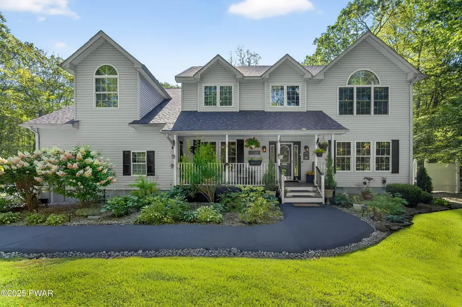 Elegant Hemlock Farms Retreat on a Double Lot Backing State Land. Welcome to this impeccably maintained 3 bedroom, 2.5 bath home where timeless design meets modern upgrades. Located in the private, gated community of Hemlock Farms. All new appliances and granite countertops in the kitchen. Hardwood floors, high ceilings with recessed lighting, floor-to-ceiling stone fireplace, barn doors to the den and half bath all help to create an atmosphere of understated elegance. The inviting primary ensuite features a fireplace in the bedroom and a completely renovated bathroom with a walk-in shower and tub. A massive bonus room above the garage provides endless opportunities. A large two car garage includes a workshop and lots of storage. Recent upgrades include a new roof, new HVAC with 2 zones, garage doors and a freshly sealed paved driveway, ensuring peace of mind for years to come. Outdoors, the professionally landscaped double lot property is a true sanctuary. Landscape lighting illuminates a gazebo, fire pit and a large paver patio, while a privately shielded hot tub offers the ultimate in relaxation. Backing onto PA State Land, the setting promises privacy and natural beauty in every season. Cozy up by either indoor propane fireplaces or the pellet fireplace in the bonus room on crispy winter days, and host summer gatherings on the deck beneath the stars. Located just a short distance from the private and prestigious Lords Valley Country Club. This residence offers a rare blend of refined living and resort-style amenities, including 24/7 security, indoor and outdoor heated pools, fitness center, pickleball, tennis and miles of hiking trails. Pride of ownership shines throughout. This is more than a home, it's a life style. Make it yours.