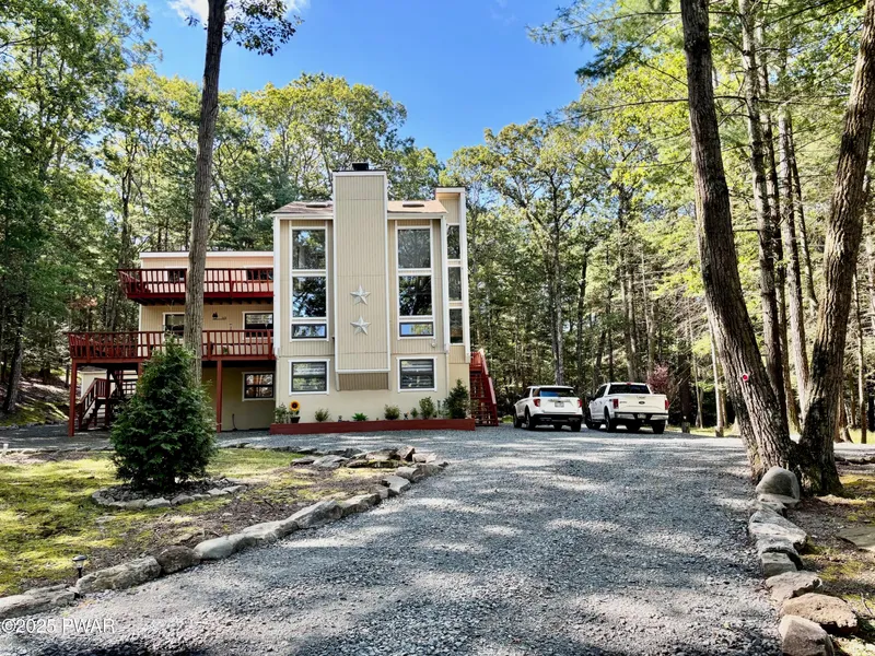 STUNNING CONTEMPORARY DESIGN COMPLETELY REMODELED HOME IN ONE OF LAKE WALLENPAUPACK'S FINEST RECREATIONAL GOLF COMMUNITIES! This stunning 2,710 sq. ft. home has lake rights to Lake Wallenpaupack and features 4 bedrooms and 3 full baths. Gleaming hardwood floors throughout the entire home, granite counters and tiled baths are just a few of the upgrades. Located on 1.4 acres with wooded privacy yet just a short golf cart ride to the community beach and marina on Lake Wallenpaupack! Residents of the Tanglwood Lakes community also have lake rights to a private 35 acre lake and the Paupack Hills golf course is located within the boundaries of the community and is a short golf cart ride from this home. Sit on the expansive deck and take in all that mother nature has to offer. The back yard firepit area invites family and friends to enjoy the peaceful paradise. This is a spectacular home on a l...