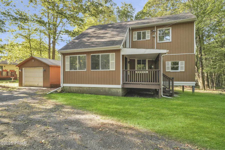 TOTALLY RENOVATED THREE-BEDROOM TWO-FULL-BATHROOM CONTEMPORARY HOME SET WITHIN A DESIRABLE POCONOS COMMUNITY. Welcome to this stunningly renovated home, perfectly situated on a private lot and thoughtfully designed to blend comfort, style, and function. From the moment you arrive, the charm begins with a covered front porch that invites you inside. Step through the door to find a fresh, modern interior featuring all-new paint and beautiful new flooring that flows effortlessly throughout the home. The open-concept living space is highlighted by soaring vaulted ceilings, creating an airy and inviting atmosphere. Newly installed ceiling lighting and fixtures add a touch of sophistication, ensuring every room feels bright and welcoming. At the heart of the home is the beautifully updated eat-in kitchen, showcasing gleaming granite countertops and ample space for cooking, casual dining, and entertaining. Adjacent, a dedicated dining room provides the perfect setting for hosting family gatherings or dinner parties. The thoughtful layout includes a first-floor bedroom, making the home ideal for those seeking single-level living or convenient guest accommodations. Upstairs, the primary suite is a true retreat, boasting a spacious walk-in closet and a spa-like bathroom with a luxurious walk-in tile shower. A second brand-new bathroom offers the same attention to detail, featuring modern finishes on the lower level. Outdoor living is equally enjoyable, with a covered side porch perfect for summer barbecues or relaxing on warm evenings. A one-car garage with electric and an additional shed provides excellent storage and workspace options. The private lot offers a peaceful setting while keeping you close to local amenities and commuter routes. Located within the Delaware Valley School District, and just minutes from the Dingmans Bridge and Town of Milford, this home is the affordable way into Milford you have been waiting for!