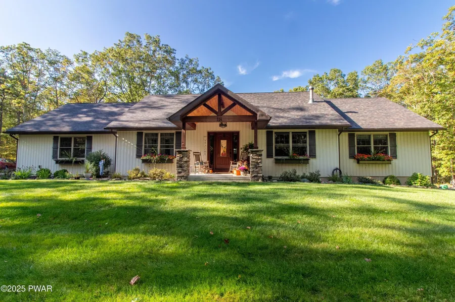 Just Built in 2021 - Move-In Ready Ranch in a Peaceful SettingPractically brand new, this thoughtfully designed ranch home delivers modern comfort in a quiet and private location with backyard and forest views. Perfectly positioned between two of PA's most charming small-towns of Hawley and Milford, and located in the Wallenpaupack Area School District, this home offers the best of both convenience and seclusion. Inside, the open floor plan is warm and inviting, with engineered wide-plank hardwood floors, wooden beam accents, and a gorgeous stone propane fireplace creating the perfect centerpiece for the living area. The modern kitchen is a showpiece with stainless steel appliances, ornate light fixtures, recessed lighting, a huge granite island and countertops, and plenty of dining space for gatherings of all sizes. The primary suite is a true retreat with a spacious ensuite bath featuring a step-in shower and walk-in closet. Still, every bedroom is designed with large closets, while a mudroom and laundry entry off the garage add smart functionality to the layout. An oversized two-car garage with paved driveway provides plenty of space for vehicles and storage. Below, the unfinished walkout basement with Superior Walls is pre-plumbed for an additional full bath, giving you the opportunity to easily expand your living space with endless possibilities. All of this in a location that is close to Lake Wallenpaupack, Woodloch Springs Golf and Spa, and Big Bear skiing. A rare combination of a nearly new build, thoughtful design, and a serene setting--this home is ready for its next chapter.
