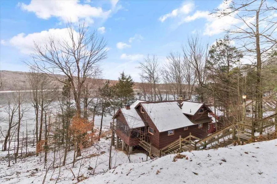 Lake Wallenpaupack Lakefront - ideally located facing Lacawac Sanctuary! Main level offers an open floor plan between the living room & kitchen, stone, floor to ceiling fireplace, 2 bedrooms and 1 full bath. Spacious second level offers a large loft, currently offering sleeping space for 9 people! Finished lower level with family room, full bath & utility/laundry room! Lower level walks out to the lakeside of the home with a gentle path to water's edge & dock! Large deck and attached screened porch. Sold fully furnished! Owner is unaware of any restrictions against short term rentals. New septic!