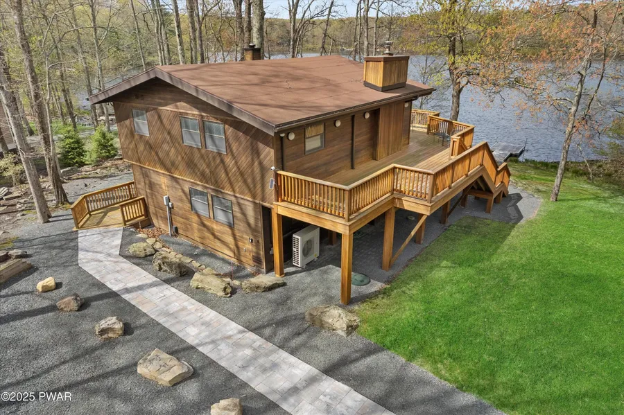 Start Living Your Best Life This Summer,Lakefront Style! Welcome to your dream escape on McConnell Lake in the exclusive amenity rich gated community of Hemlock Farms. This 3-bedroom, 2-bathroom LAKE HOME offers everything you need to soak up summer and beyond. Situated on a level lot with dynamic lake views just steps from your door, this home blends charm, craftsmanship, and comfort in perfect harmony. Inside, you'll find an open floor plan centered around a brick-faced wood-burning fireplace ideal for cozy nights and memorable gatherings. The homeowner, a former luxury hardwood flooring professional, filled this space with high-end woodwork, including custom inlays that bring a unique flair and warmth to every room. The exterior is just as impressive, featuring Epi and Garapa wood siding and decking known for their beauty and durability. A two-car garage adds practicality, while the surrounding natural beauty sets the scene for serene lakeside living with ample parking. Hemlock Farms offers a long list of amenities, including lakes, pools, tennis courts, pickle ball, fitness center, clubhouse, and more there's something here for everyone. This summer, make it e see what life on the lake is all about