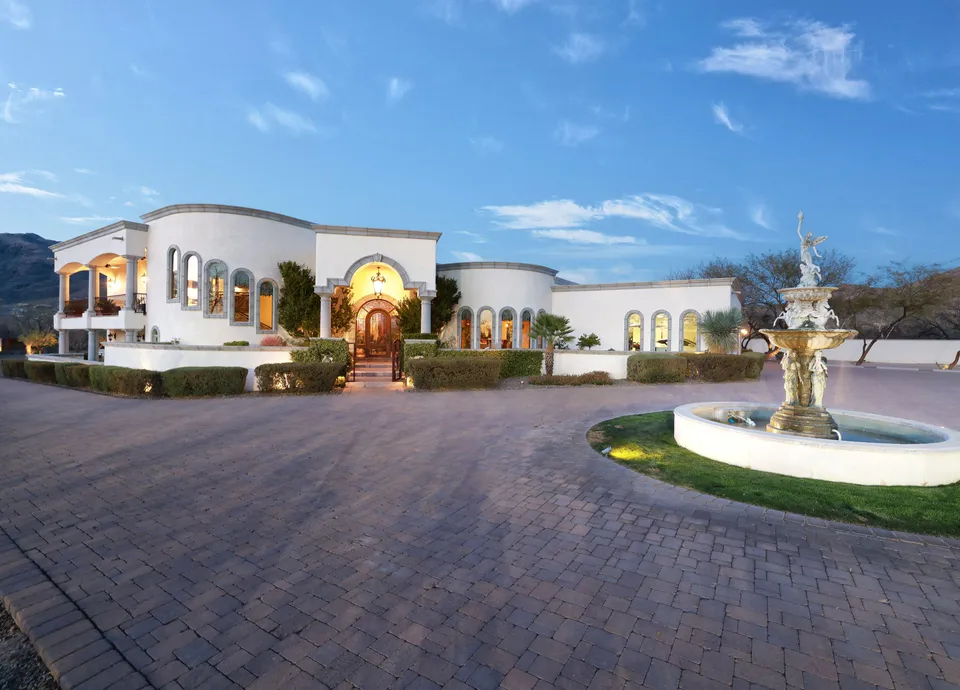 As you enter through a stunning custom gate and follow the paver driveway past meticulously landscaped grounds, you're welcomed by a stately Italian fountain. The home itself offers breathtaking mountain views and exceptional equestrian facilities.