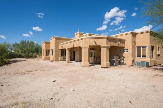 Enchanting Custom Home on a scenic, quiet Cul-De-Sac. Charming Small Community with only 10 Luxury Home Sites. Colored concrete pathways lead you to the designer iron gate and into the finished courtyard with brick pavers, rose bushes, flower beds and a garden area where Catalina Mountain views abound. This elevated lot has expansive views of the Tucson Mountains and Santa Ritas from the BY. Double Alder doors usher you into the great room with 15 ft ceilings, pine pillars, gourmet kitchen, we bar and more. This home was built for entertaining! It has hosted many memorable events over the years and can host glamorous events for you!