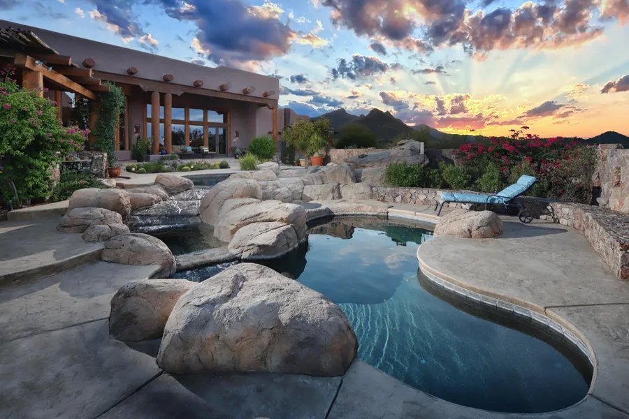 Resort-style backyard, pool, spa water feature, many outdoor sitting areas, covered patios and built-in barbecue. Great for entertaining or just quiet nights to enjoy our Arizona sunsets, mountain and city views!