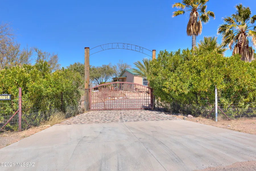 Welcome to ''Villa Belem''! Corner lot, 2.57 acre mini ranch with stunning views of Elephant Head and city lights! A stone circular driveway leads you to the 1664 sq. ft. 2 bdrm/2ba open concept home. Four gated entrances to property. Covered back patio. The two backyard Ramadas are a great space for entertaining or just relaxing while star gazing! Beautifully landscaped both front and back. 1500 sq. ft. fully insulated workshop complete with half bath, steel beams, metal roof and plenty of work benches. Two storage sheds and, a 1600 sq. ft. space, with bathroom. A perfect space for a studio or additional storage. Peace, serenity and no HOA!