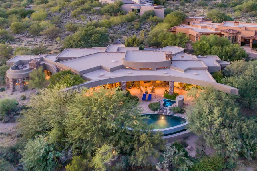 Luxury Living at its Best! Stone Canyon desert Contemporary design by Architect, Ron Robinette and award-winning interior designer, Lori Carroll spared no expense on this exquisitely finished home. Magnificent entry with hand crafted front doors revealing walls of windows and spectacular views of the Santa Catalina mountains. Easy flowing 5,150 sq.ft split floor plan in the main house plus 795 sq.ft. guest house. Total of 4 bedrooms and 6 bathrooms, all en-suite baths, also an executive office suite with fireplace, bath and custom cabinetry. Extremely spacious great room with dramatic custom-made fireplace and mantle. Large sitting area and dining area. 1,000 bottle refrigerated wine room.