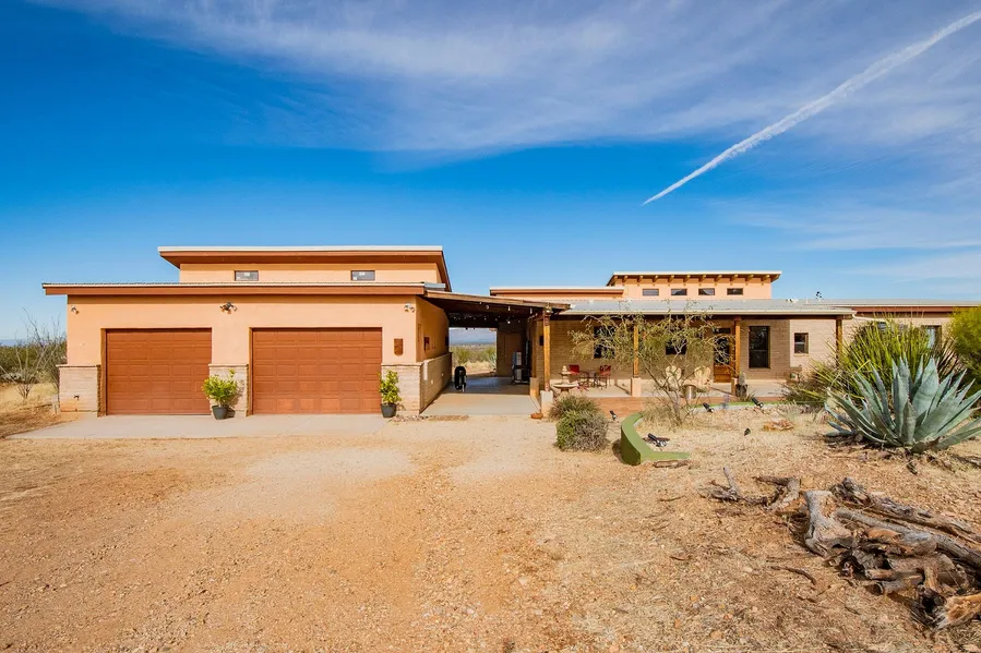 Situated against the gorgeous peaks of the Santa Rita Mountains, this custom adobe home has so much to offer! Expansive views, 4.13 acre parcel, 3 bedroom/3 baths, 2,853 square feet inside. Gorgeous concrete flooring throughout lay the foundation for this solidly constructed, southwestern style home. Large kitchen with updated sink and cabinet insert, separate prep sink, custom cabinetry, plenty of counter space and storage, large walk in pantry, eat in breakfast / dining area and views to the relaxing covered courtyard. The oversized great room provides beautiful city views, vaulted wood ceiling with exposed beams and flexible space planning which can also house a formal dining area if you wish. Large owner's suite has dual vanities, dual walk in closets, walk in shower with unique metal surround and access to one of 4 separate patios. The garage is truly something all by itself with 1,...