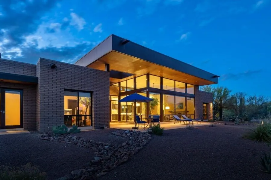 Built in 2013, this Robinette desert contemporary is the ultimate lock & leave AZ residence. Ideal property for pilots, equestrians, or anyone seeking a peaceful, sanctuary-style setting w/ extraordinary views & abundant wildlife. This privately gated home is located on an 8.42-acre saguaro-studded mountain view lot w/ unmatched privacy in the La Cholla Airpark- a private residential airpark in the foothills of the Tortolitas. A long, exposed aggregate driveway surrounded by natural desert leads to this striking custom home built w/ concrete block, walls of glass, metal & wood & offers a contemporary design that effortlessly brings the outside indoors. Have all of the luxuries & amenities expected without the maintenance & upkeep of a large home. Efficient 2800 SF, 2-bedroom/2-ba CONT...
