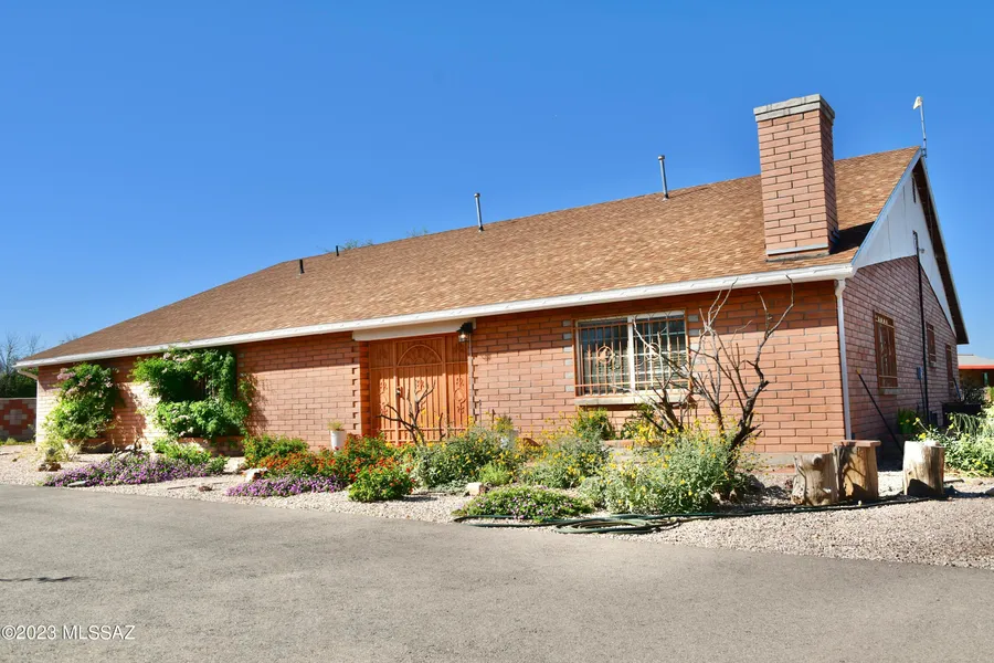 1 acre! House with 5BR/3BA, a detached Casita with 1BR/1BA, round pen/corral, horse stalls, chicken coops. Lots of space, within an easy reach to Downtown, Raytheon, Green Valley. Open floorplan with elevated dining area off of family room. Tile floors, wood beam ceilings, stone fireplace grace the family room. Ceiling fans throughout. Kitchen has granite countertops, space for a kitchen nook or desk for office, breakfast bar, gas range, portable dishwasher, and fridge. Large laundry room with washer/dryer. Easy access for those in casita too. Casita has 1 BR, great room, quaint kitchen with fridge, stove, mini split HVAC, separate yard. This property may qualify for up to a $5000 Homebuyer Community Grant that can be used to reduce the cost of your Guaranteed Rate Affinity Mortgage.
