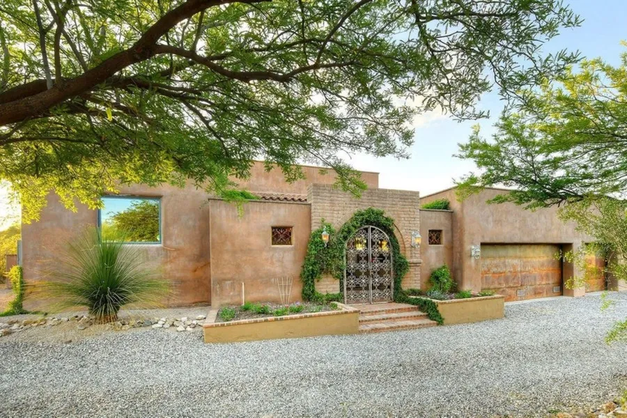 Exquisite newer Arizona Territorial on 2 acres w/ majestic mountain views in Catalina Foothills Estates #2. Charming front gated brick courtyard, living rm & dining rm w/ dramatic 12 ft. high beam ceilings, elegant fireplace, beautiful polished concrete floors, wood cased windows & French doors throughout, gourmet island kitchen w/granite countertops, stainless steel appliances, double ovens, gas stove top, refrigerator, pantry, breakfast area, wet bar w/ wine cooler, large family room, 5 bedrooms (split plan), 3 baths, master w/ sitting area, fireplace, walk in closet, lux bath, natural stone countertops, double sinks, jacuzzi tub, wonderful shower, private entry to rear patio, laundry rm w/sink & 3 car garage. Sensational backyard w/ covered patio, grass, play area & mt views.