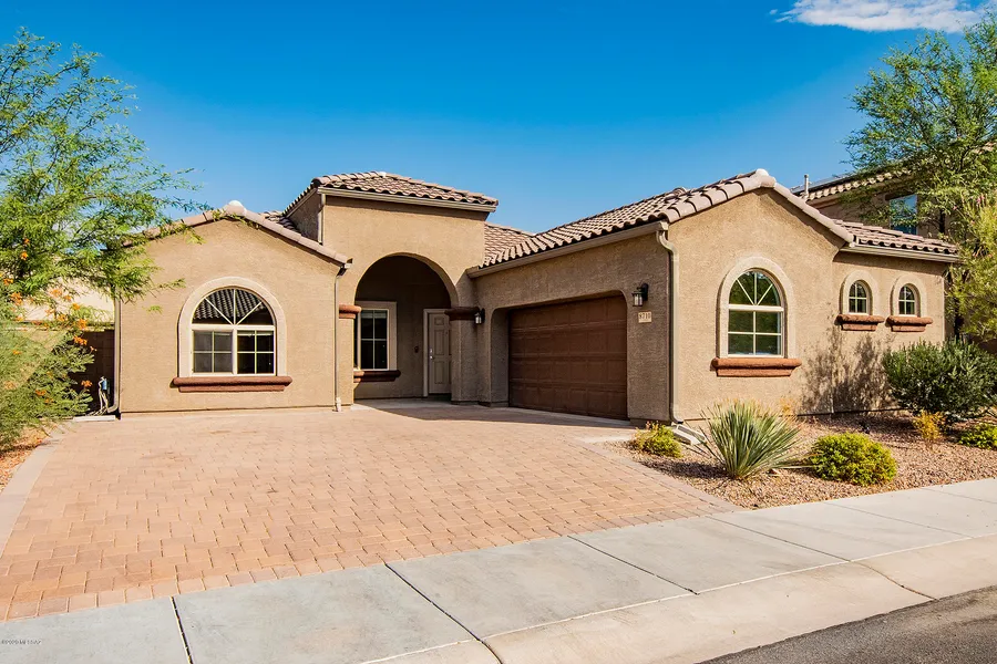 Beautiful Kramden model in Saguaro Bloom! The paver driveway contributes to the curb appeal of this well-maintained property. Open floorplan, spacious kitchen, 4 bedrooms + bonus room. See the floor plan under the documents tab. This well-maintained home has wood-look, high quality vinyl flooring throughout - (No Carpet!), window blinds, landscaped backyard, water softener, reverse osmosis, and a transferable termite warranty. The community is within a short commute to shopping, dining and I-10. Community amenities include pools, splash pad, parks, exercise facilities, all for a reasonable HOA fee. Don't wait for a new build when you can get a home with back landscaping, window coverings, etc. Come see this move-in ready home today!