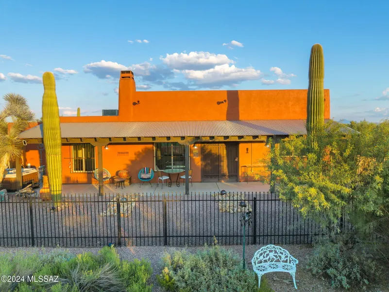 Rural living at it's finest with all of the luxuries of a high quality hacienda including Incredible mountain and sunset views! Sought after TJ Bednar Santa Fe home on well over an acre with sparkling pool, jetted hot tub, barn/storage, animal facilities, electric fencing and pens. Rare and beautiful Cosmos granite kitchen countertops, new appliances, new flooring, new paint and worry free as this home has been immaculately cared for and beautifully updated.