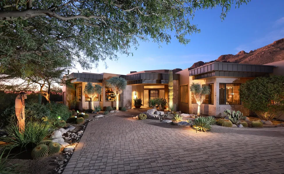 Presenting an architectural marvel in the prestigious guard-gated community of Pima Canyon Estates, offering an unparalleled fusion of sophisticated design and natural desert beauty. Nestled amidst panoramic views of the rugged Catalina Mountains, this stunning 6,300+ sq ft Southwestern Contemporary exudes elegance at every turn. With a commanding presence, this 5-bedroom, 5-bathroom residence is a sanctuary of style and comfort, designed to elevate modern living. Step into a sunlit haven, where expansive windows, soaring ceilings, and 24x24 sandstone flooring create a luminous, airy ambiance. The chef's kitchen is a masterpiece in itself, reimagined with impeccable attention to detail: custom cabinetry, sleek quartz countertops, a refined tile backsplash, and premium appliances including a Sub-Zero refrigerator/freezer, dual Viking ovens, and twin Miele dishwashers ensure every culinary experience is exceptional. The luxurious primary suite is a retreat of unparalleled comfort, featuring a marble-faced fireplace, retractable solar sunscreens, and custom shades for optimal privacy and elegance. Off the dining room, a show-stopping glass and mahogany wine cellar creates an intimate setting, perfect for hosting conversations over your favorite vintages, all maintained at ideal temperatures with dedicated climate control. Step outside to an oasis of tranquility and luxury. The meticulously landscaped grounds are a testament to masterful design, featuring lush desert flora that seamlessly blends with the natural surroundings. The custom cedar-lined ramada with sandstone flooring provides a serene setting for outdoor relaxation and entertainment. Here, you'll find a sparkling pool and spa that invite leisurely afternoons, while expansive patios offer breathtaking mountain vistas. This meticulously curated home is further enhanced by a state-of-the-art audio/video system, new chandeliers, and custom cabinetry in the office. Enveloped by professionally designed landscaping and thoughtfully upgraded to perfection, this residence epitomizes refined desert living. Experience the height of luxury in Pima Canyon Estates & schedule a private showing today.