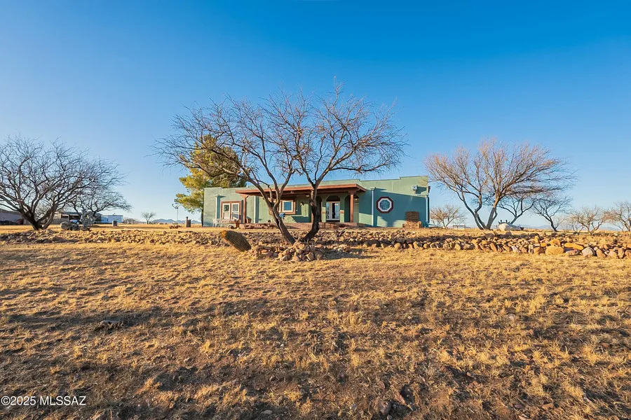 Exceptional 7-acre ranch in Pima County with stunning mtn views and private gate access to historic Empire Ranch. Southwestern home with 2x6 construction features split floorplan. Enjoy open-concept living, dining, and kitchen area. Kitchen has new stainless steel refrigerator & stove, lots of storage, and separate walk-in pantry. Master suite boasts luxurious bath with its own tankless water heater, clawfoot soaking tub, separate shower, and granite vanity, plus walk-in closet and dressing room. Large 2nd & 3rd bedrooms have walk-in closets. 2nd bath has double vanity, tub/shower, and linen closet. Separate laundry room. Private well. Large carport, 2 sheds (1 with porch), fenced-in kennel, and large arena with premium sand footing. Board horses (low rate) next door while building pens.