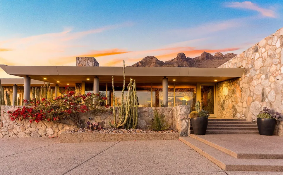 A truly spectacular blend of authentic desert contemporary design and sophisticated modern architecture set on a magical 6.5 acre saguaro studded lot backing to the National Forest. Originally built in 1961 with natural stone quarried from the property, the current stewards of this timeless beauty embarked on a journey to transform and recreate this Frank Lloyd Wright inspired home into a true desert modern masterpiece with none other than Mike Franks, master builder with La Quinta Homes. Armed with exquisite good taste, a dream design team and a healthy budget, the end result is nothing short of amazing. As you enter the private gates and meander up the winding driveway, you are greeted by the most beautiful desert landscaping you've ever seen! The grounds were perfected by Tom Black