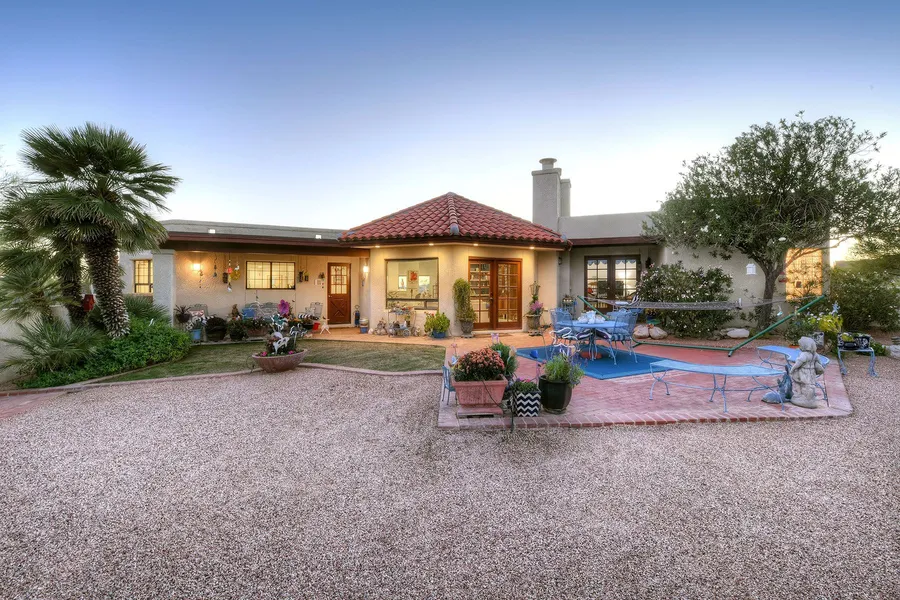 Foothills Estates #10. Decorated by an ASID designer, a front brick paver entry invites you into this exceptional home with over 2781 sq.ft. Exquisite living room with large picture windows, formal dining area with wet bar, gourmet island kitchen with white cabinets, tile countertops, Stainless steel refrigerator, double ovens, pantry, lovely breakfast area, wonderful family room with fireplace, 12 ft. high ceilings, gorgeous white tile floors, and 8 ft. doors, custom 6.5” baseboards throughout, 3 bedrooms, 2.5 baths, including master suite w/sitting area, fireplace, luxurious bath w/double vanities, Jacuzzi tub, large walk in closet and private entry to the rear covered patio. The additional 2 bedrooms each have oversized walk in closets. Enjoy the fabulous backyard w/covered patio, grass, lush landscaping, , oversized 2 car garage with storage room , District 16 schools and incredible mountain views.