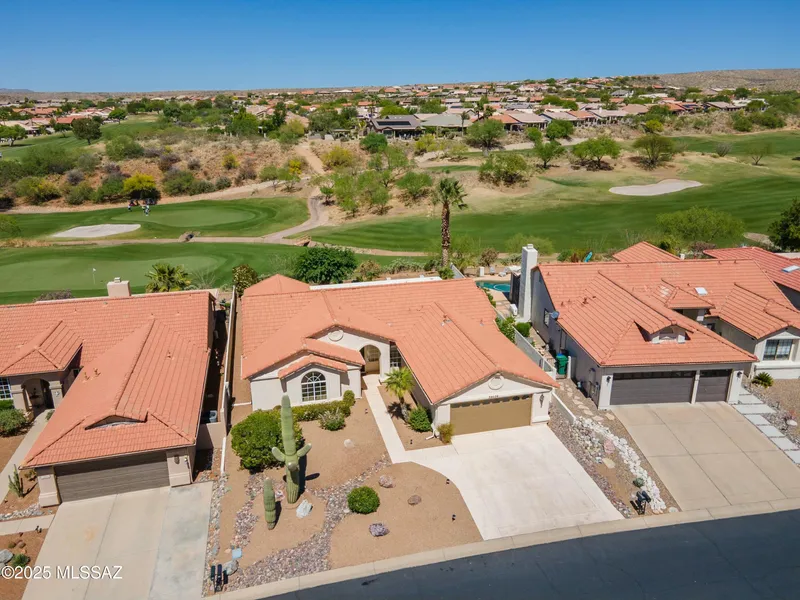 Inviting you to enjoy golf-inspired living at its finest. Step into this lovely 2BR 2 1/2 Ba Topaz in the highly sought after HOA 1 neighborhood and Unit 9. You will enjoy unobstructed panoramic sweeping golf course views with this lovely home perched high on an elevated lot above 5th fairway of the Catalina golf course. As you step through the sliding doors leading onto the spacious shaded patio, you will be in awe with the courses lush green carpeting on pristine greens. This property and backyard oasis features mature vegetation including saguaros, a massive palm tree, and picturesque desert landscape with ample room to add a pool/hot tub. Use your creativity in remodeling this lovely home to your desire.