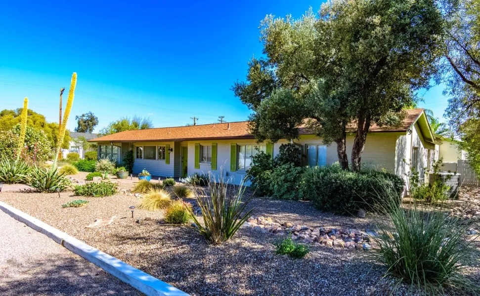 Meticulously maintained by the same owner for 45+ years, this stunning ranch style, mid-town '50's home is a 3BD/2BA + den in Tucson's desirable Historic San Clemente neighborhood blending timeless charm with modern upgrades. Situated on a beautifully landscaped corner lot with a citrus grove, this property features a formal living room with a beehive fireplace, adjacent dining, and a chef's kitchen with breakfast bar, newer stainless appliances, gas range, and warming drawer. A spacious family room includes a built-in dry bar and wine rack—perfect for entertaining. The versatile den/office has a private entrance. Two fully remodeled bathrooms include a luxurious primary suite with dual vanities, walk-in shower, jetted tub, fireplace, and a large walk-in closet. North/South-facing outdoor areas maximize water efficiency and feature two rear patios ideal for gatherings, with ample space t...