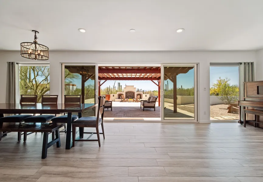 Nestled on a spacious 1.19-acre lot in the highly desirable Cat 8 neighborhood, this beautifully updated desert retreat blends comfort, style, and convenience. Surrounded by 2 private walled yards-1 offering sweeping city views to the south, the other framing the majestic Catalina Mountains to the north-this home offers a peaceful, picturesque setting both inside & out. Thoughtfully renovated, the interior boasts modern finishes throughout, including gorgeous quartz countertops, farm-style sink, beautiful cabinetry and elegant wood-look porcelain tile flooring. Entertain or unwind in the living area with a retractable projector screen and built-in surround sound system-perfect for movie nights. Stay cool year-round with a new HVAC system installed in 2023. Outdoors, enjoy low-maintenance desert landscaping, charming flagstone paths, updated gutters, and an extended, resurfaced driveway. ...