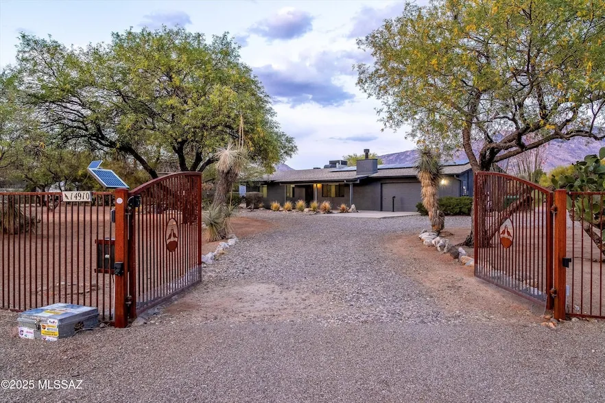 Wake up to serene sunrises from the back patio and unwind in the evening with spectacular sunsets from the front. Experience comfort and serenity in this warm and inviting Gated property in Catalina with Stunning Mountain Views on 1.06 acre with No HOA and Horse Property. The spacious living areas are bathed in natural light, accentuating the home's cozy yet elegant design newer kitchen wood cabinetry, Quartz counters & High-End GE appliances. Newer central AC installed in 2023 plus a mini split in the family room. All new contemporary fans and lighting throughout the entire home. Solar installed with a $175 / month lease, zero to very low monthly electric bills. See attached an extensive list of improvements made to enhance the quality of this home.