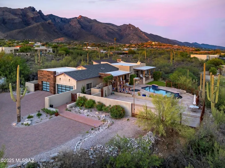 Experience the pinnacle of Catalina Foothills luxury living in this stunning custom home where dramatic mountain vistas create an ever-changing masterpiece through floor-to-ceiling windows. Situated on over an acre in the prestigious Foothills subdivision within District #16, this meticulously crafted 4-bedroom, 4-bathroom residence offers 3,218 square feet of sophisticated living space where the majestic Catalina Mountains serve as your private art collection, transforming from golden sunrise alpenglow to fiery sunset silhouettes. Tucked away for ultimate privacy yet strategically positioned in one of Tucson's most coveted neighborhoods, this property offers front-row seats to nature, walkability to high end restaurants and shops while maintaining the exclusivity of your own