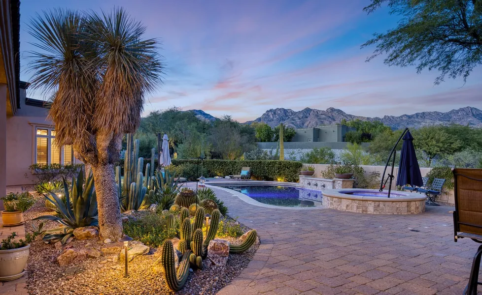 Discover the pinnacle of luxury living with this exquisite 6,654 sq. ft. single-level estate, situated on over 1.5 acres of meticulously landscaped grounds within the exclusive Rock Canyon Estates gated community of Ventana Overlook. This breathtaking 5-bedroom, 4.5-bathroom home combines timeless elegance with modern amenities, all while offering spectacular mountain views that redefine serenity. The interior boasts a spacious, step-free layout with generously sized rooms designed for both comfort and sophistication. The renovated kitchen, equipped with top-of-the-line appliances, is a culinary masterpiece perfect for entertaining, complete with an adjacent full bar featuring a wine refrigerator and ice maker. (Continued)