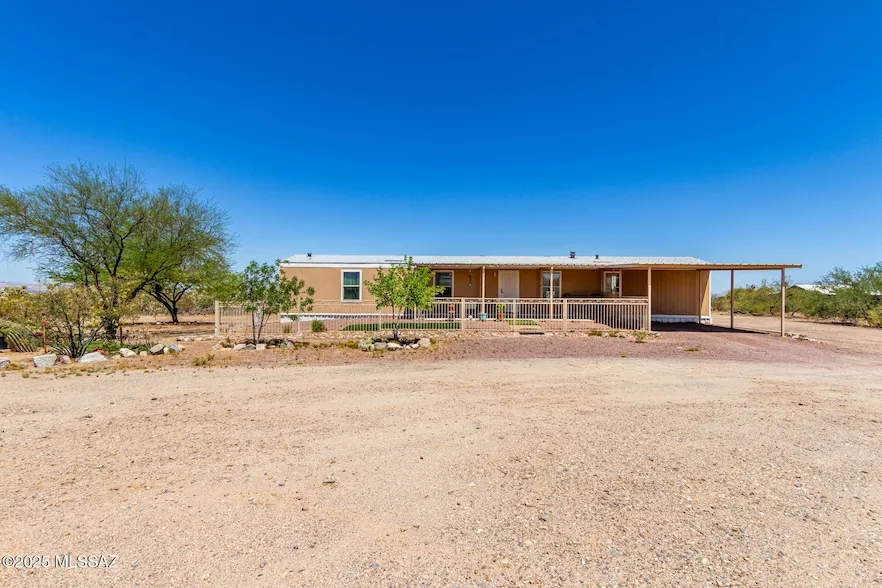 Matterport available on MOUNTAIN VIEWS! Charming horse property situated on 4.22 acres is about to be yours! This single-story home displays carport parking and a welcoming front porch where you can enjoy morning coffee or relaxing evenings. Enter to find an inviting living room filled with abundant natural light, neutral paint, vaulted ceilings, and wood-look flooring in all the right places. The eat-in kitchen comes with plenty of honey oak cabinets, matching appliances, and quartz counters. Continue onto the perfectly sized primary bedroom, offering plush carpet and a bathroom with a glass step-in shower. The expansive backyard provides a Steel constructed shop/storage shed, tack room, and horse stalls. The horses will have lots of space to roam. A rare gem.